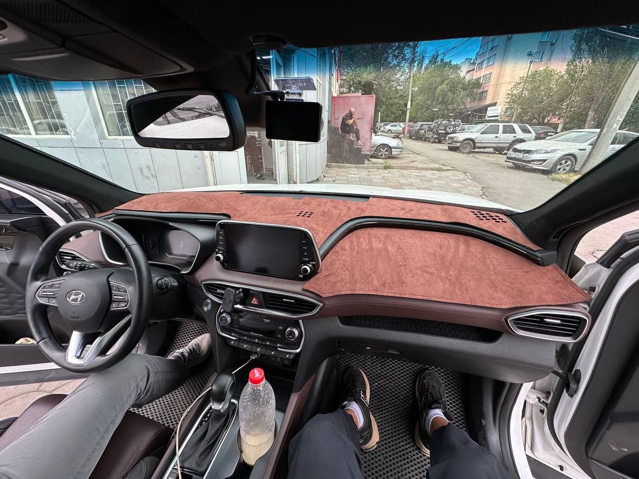 Алькантара , наполнитель и силиконовые покрытие. Накидка идеально прилегает на торпеде вашего авто, придает премиальный вид и защищает вашу панель